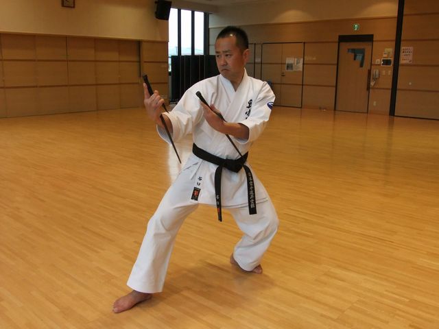 ・手刀受け(猫足立ち) ・蹴込み追い突き ・前足中段蹴り逆突き ・足刀蹴り ・中段内払い ・上下段払い など