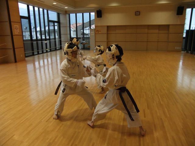 ・組手移動稽古 ・約束組手A ・約束組手B ・約束組手C ・返し一本組手 ・返し技A ・返し技B ・鍛錬組手A ・鍛錬組手B ・鍛錬組手C ・自由一本組手 ・試合用組手練習 ・ミット打込み練習