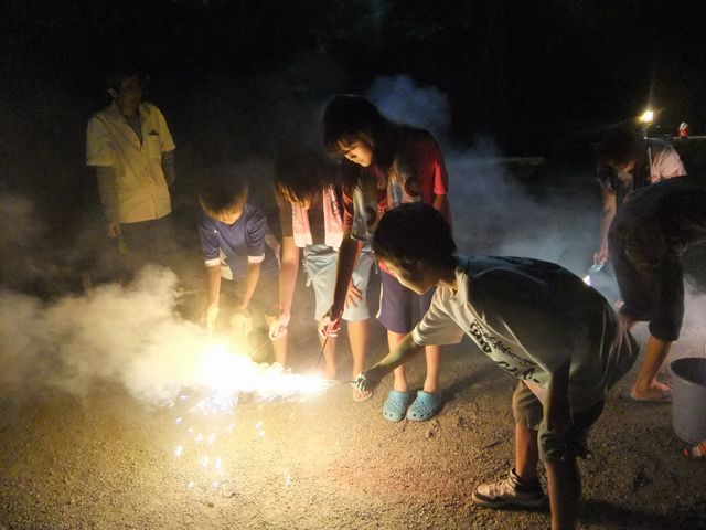 稽古後はご家族も一緒にバーベキュー、花火と楽しい時間を過ごしました