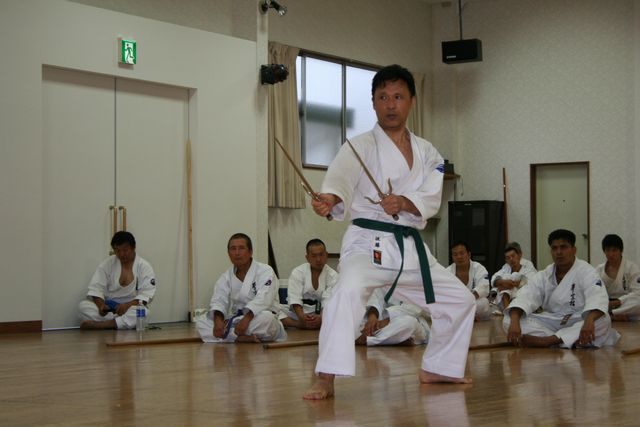 古武道の昇級審査も行われました。厚木支部のGTOさん!素晴らしい!(写真左)